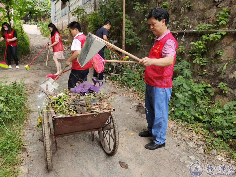 7月10日上午,机关党委第一支部党员多名积极响应梧州市委、市政府关于向““脏乱差”宣战的号召,在邱房贵副校长带领下到莲花山社区开展“双报到”志愿服务活动,助力梧州市创建全国文明城市。