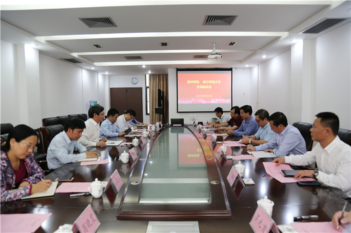南宁师范大学校长李传起(图左三)与杨奔校长一行座谈交流