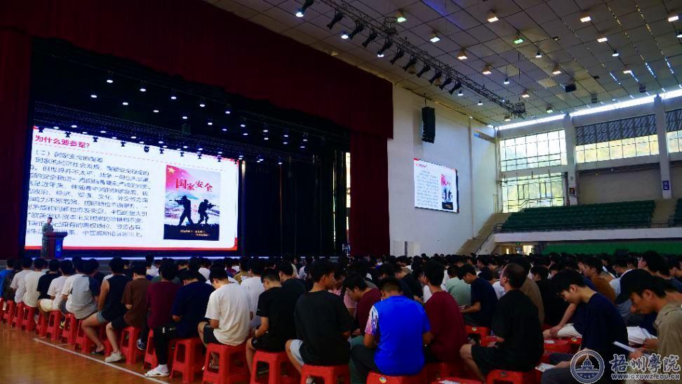 11月1日下午,学生工作部(处)在体育馆三楼举办2025年征兵政策宣讲会,梧州市万秀区人民武装部副部长周英作征兵政策宣讲。2025届全体毕业班辅导员、全体男毕业生以及有意向参军入伍的其他学生共约1200人参会。